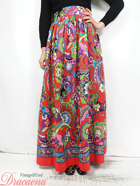 レディース 古着 スカート 70s 総柄 花柄 ペイズリー 赤 パープル カラフル レトロ ポップ ロングスカート M L位 古着の通販はau Pay マーケット 古着屋ドラセナ